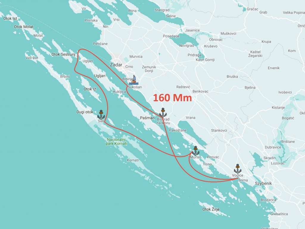 Przepłynięto na s/y Murter (Bavaria 46) około 160 Mm.