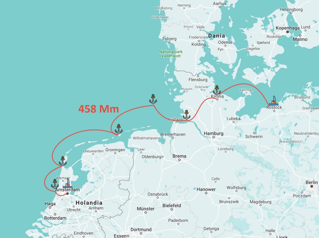 Odwiedzone miejsca: Kiel, Brunsbuttel, Helgoland, Borkum, Den Helder, Ijmuiden