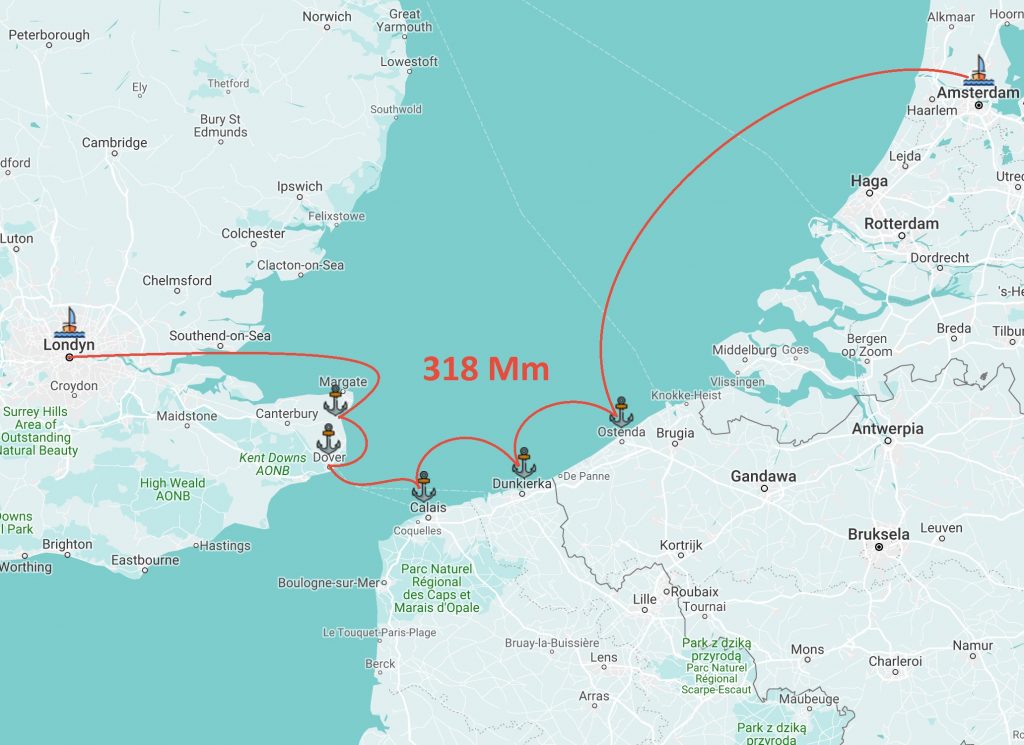 Odwiedzone miejsca: Ostenda, Dunkierka, Calais, Dover, Ramsgate