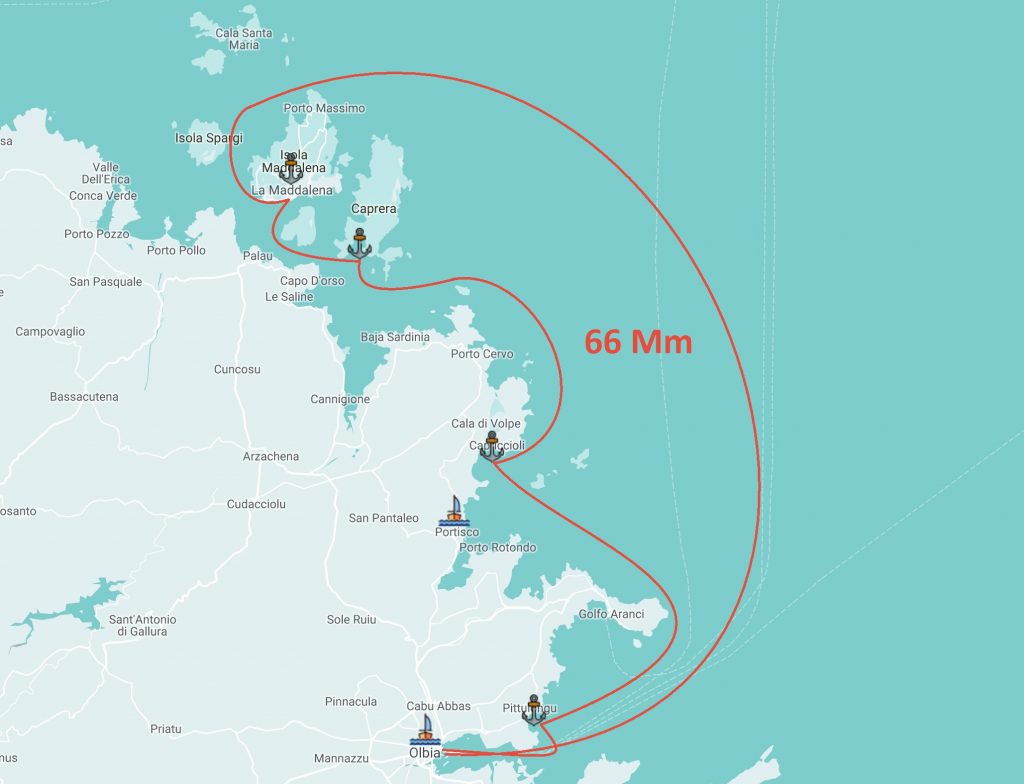 Odwiedzone miejsca: Secca dei Porri (kotwica), Capriccioli (kotwica), Porto Cervo (kotwica), Porto Palma (kotwica), La Maddalena (Cala Gavetta)