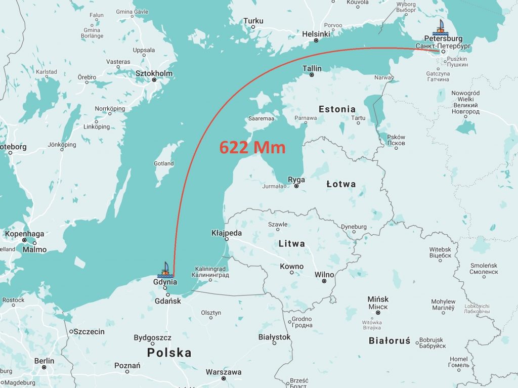 Przepłynięto na s/y Zawisza Czarny (PZ-1) około 622 Mm.
