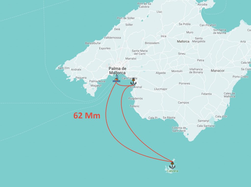 Odwiedzone miejsca: Cabrera (kotwica); Puerto de S’Arenal (kotwica)